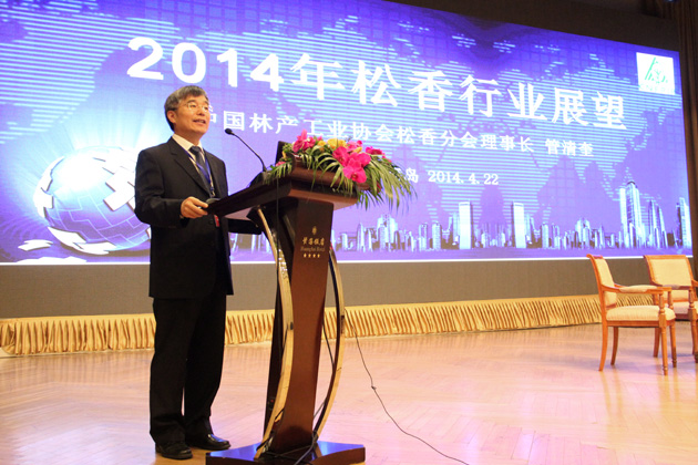 中國(guó)林產(chǎn)工業(yè)協(xié)會(huì)松香分會(huì)理事長(zhǎng)管清奎作《2014年松香行業(yè)展望》主題報(bào)告