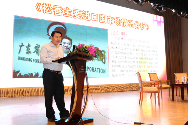 廣東省林產(chǎn)工業(yè)公司副總經(jīng)理張金明作題為《松香主要進(jìn)口國(guó)市場(chǎng)情況分析》專(zhuān)題發(fā)言