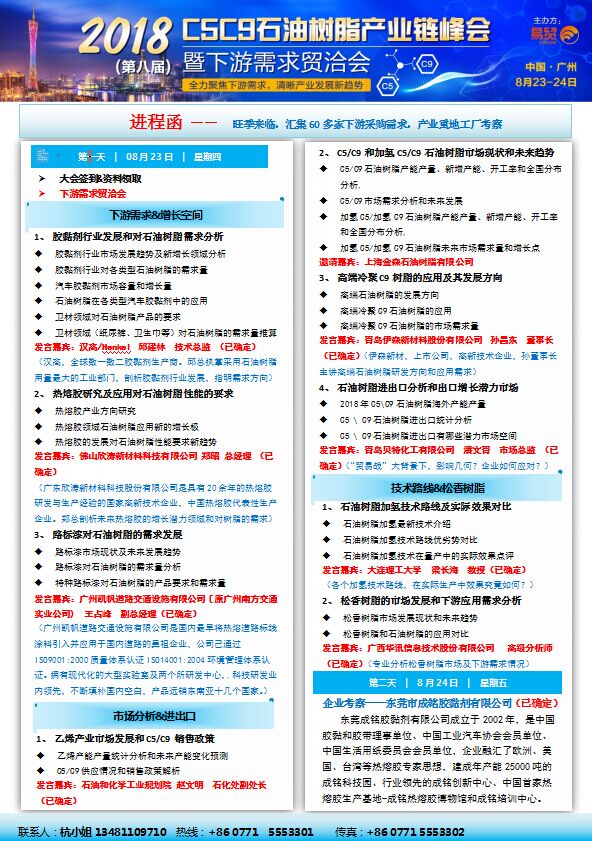 2018(第八屆)C5C9石油樹脂產(chǎn)業(yè)鏈峰會暨下游需求貿(mào)洽會(最新進(jìn)程)