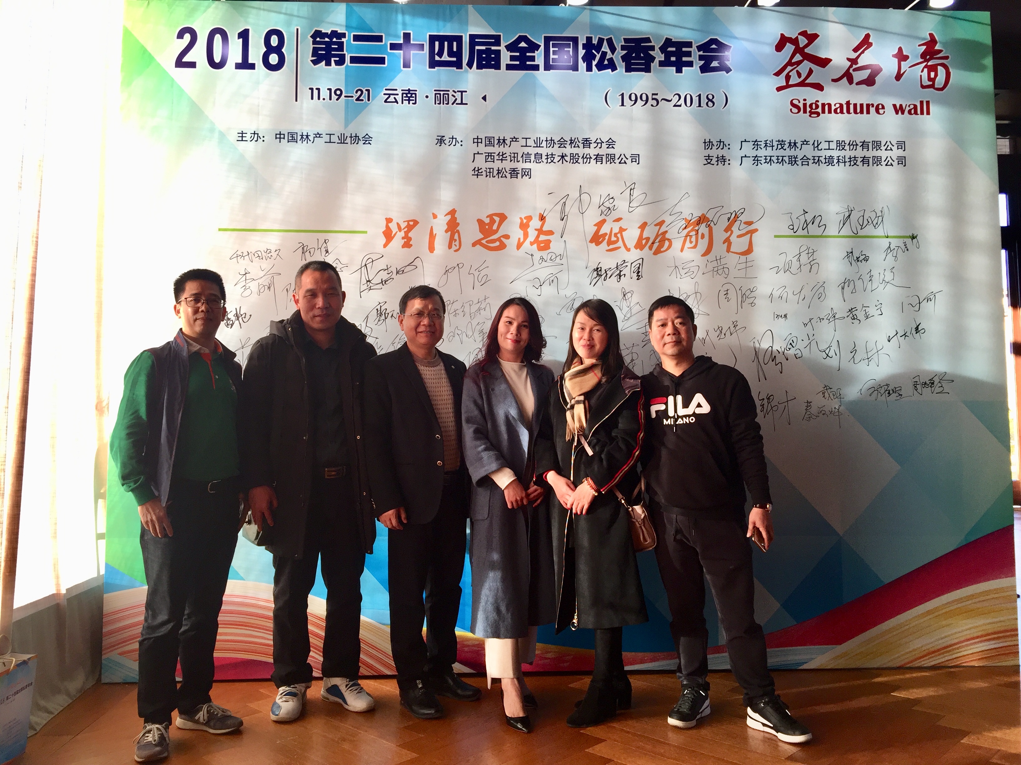 (中國林產(chǎn)工業(yè)協(xié)會松香分會副理事長、廣東科茂董事長曾廣建在簽名板前拍照留念)