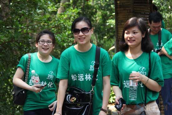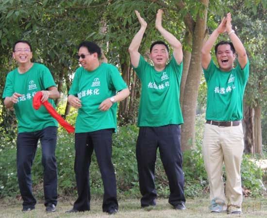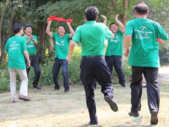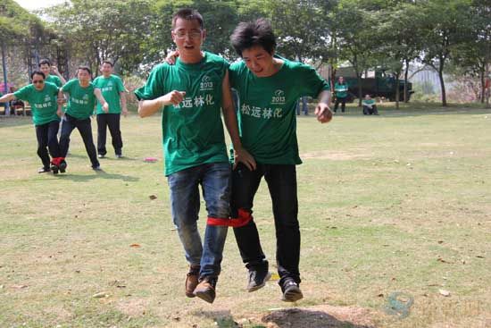 大家休息片刻后,接過(guò)主持人手中的紅繩,開(kāi)始了最具有挑戰(zhàn)力的“綁腿接力賽”,依舊是紅、黃、綠三隊(duì)進(jìn)行比賽。主持人一聲令下,馬上向前沖到隊(duì)友面前,解開(kāi)腳上的紅繩子傳遞給下一小組的隊(duì)友,在一片歡呼吶喊聲中,大家群情激昂,誰(shuí)也不愿意拖后腿,本來(lái)是一個(gè)娛樂(lè)的游戲,變成了你追我趕的比賽,當(dāng)黃隊(duì)到達(dá)終點(diǎn)解開(kāi)紅繩一路飛奔回到起點(diǎn)最終獲勝時(shí),大家一起鼓掌慶祝。在一陣激動(dòng)人心的游戲后,大家開(kāi)始坐上旅游車(chē)延著公園欣賞一路美景,并觀看了黑熊。憨態(tài)可掬的黑熊逗得大家笑聲不斷。