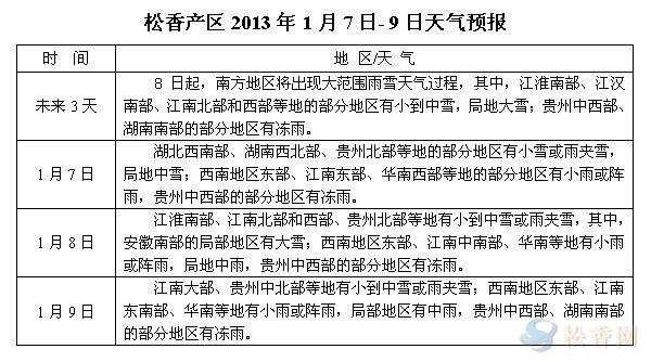 松香產(chǎn)區(qū)2013年1月7日- 9日天氣預(yù)報(bào)