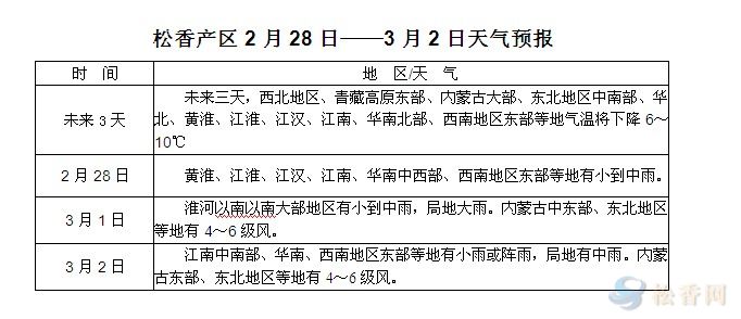 華訊松香網(wǎng)溫馨提醒:未來三天,受較強(qiáng)冷空氣影響,多數(shù)產(chǎn)區(qū)將迎來不同幅度降溫,兩廣等地降溫陰雨天氣,或使松林承包洽談工作略受滯緩。另云南地區(qū)大部以晴朗天氣為主,采脂工人上山采脂或進(jìn)行采脂前的準(zhǔn)備工作可順利進(jìn)行,新脂預(yù)期將在3月中下旬陸續(xù)下山。