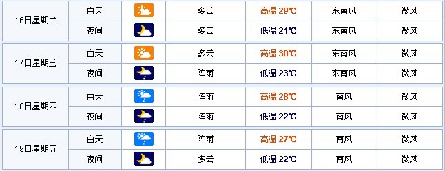 2013松香高峰論壇會議期間天氣參考: