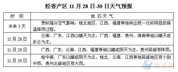 松香產(chǎn)區(qū)11月28日-30日天氣預(yù)報