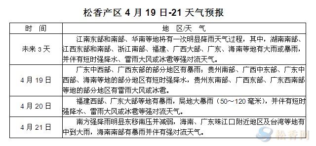 華訊松香網(wǎng)提醒:未來三天,江南華南等地有明顯降雨過程,局部有短時強(qiáng)降水;粵桂部分地區(qū)有雷雨大風(fēng)或冰雹等強(qiáng)對流天氣,請上山人員注意避開極端天氣。