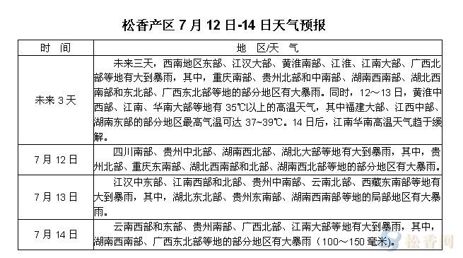 華訊松香網(wǎng)溫馨提示:未來三天,西南部分地區(qū)將迎來強降雨天氣,貴州、湖南、湖北、廣西部分地區(qū)有大暴雨,當?shù)厮芍\采收、運輸將受到影響,降雨或能緩和脂價進一步下調(diào)的壓力。同時,未來兩日福建、江西、湖南等部分地區(qū)將出現(xiàn)高溫天氣,采脂人員應合理安排時間,避開高溫天氣作業(yè)。