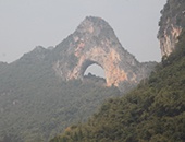 8日早上8:30,大伙向最后一個(gè)景點(diǎn)出發(fā)——月亮山景區(qū)的大榕樹(shù),這也是桂林陽(yáng)朔的一個(gè)著名景點(diǎn)。大巴士開(kāi)進(jìn)景區(qū)停車場(chǎng)剛停穩(wěn),大伙就魚(yú)貫而出直奔目的地,進(jìn)入景區(qū)大門口,只見(jiàn)一棵千年古榕遮天蔽日,樹(shù)圍大約七米多,高近二十米,枝繁葉茂,盤根錯(cuò)節(jié),氣根如老人胡須在風(fēng)中飄拂,樹(shù)干有的貼地而生,有的斜出如飛龍破霧。大榕樹(shù)下的另一側(cè)是金寶河,河水緩緩流淌,明凈如鏡,一排竹筏??亢舆?;金寶河對(duì)岸有一小山,山中空如一座石門,叫穿巖;巖頂左側(cè)石壁上有一石,如鉤;洞口臨水一石,如蛙;在此設(shè)有劉三...
