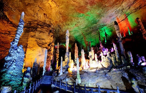 黃龍洞是張家界武陵源風(fēng)景名勝中著名的溶洞景點(diǎn),因享有“世界溶洞奇觀”“世界溶洞全能冠軍”“中國最美旅游溶洞”等頂級(jí)榮譽(yù)而名震全球?,F(xiàn)已探明洞底總面積10萬平方米;洞體共分四層,洞中有洞、洞中有山、山中有洞、洞中有河。經(jīng)中外地質(zhì)專家考察認(rèn)為:黃龍洞規(guī)模之大、內(nèi)容之全、景色之美,包含了溶洞學(xué)的所有內(nèi)容。黃龍洞以其龐大的立體結(jié)構(gòu)洞穴空間、豐富的溶洞景觀、水陸兼?zhèn)涞挠斡[觀光線路獨(dú)步天下,內(nèi)中有天然空調(diào);洞中燈火闌珊、石筍林立,是名副其實(shí)的“地下魔宮”,洞中還有投保一億元的石筍定海神針著名景點(diǎn)。