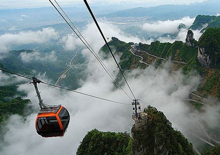 體驗(yàn)世界最長的單線循環(huán)脫掛抱索器車廂式索道:天門山索道