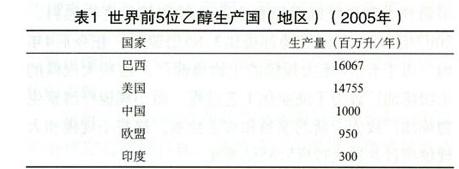 巴西和美國的燃料乙醇生產(chǎn)量合計占世界燃料乙醇生產(chǎn)量的90%,兩國政府自1970年起就大力支持乙醇生產(chǎn)。表1列出世界前5位乙醇生產(chǎn)國(地區(qū))。