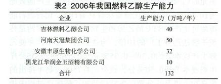 在“十五”期間,我國批準河南天冠、黑龍江華潤、吉林燃料乙醇和安徽豐原四家企業(yè)加工燃料乙醇,設計產(chǎn)能為122萬噸/年,到2005年年底總產(chǎn)能己超過設計產(chǎn)能。到2006年我國燃料乙醇生產(chǎn)能力已達到132萬噸/年(見表2)。
