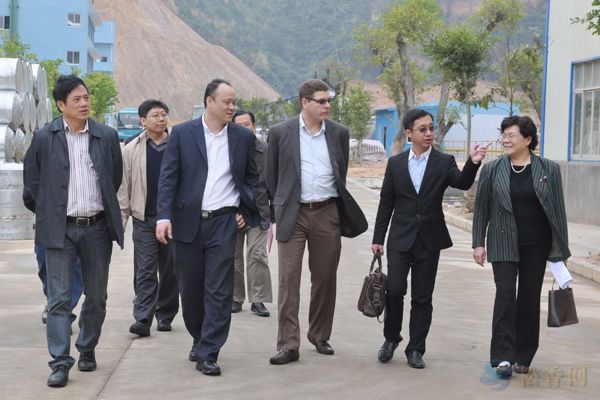 考察團在廠區(qū)考察。左三為亞太區(qū)生產(chǎn)總監(jiān)Ricardo、左二為大中華區(qū)銷售總監(jiān)姚健清,左一為總經(jīng)理車乾池,右一公司副總經(jīng)理全楚娃。
