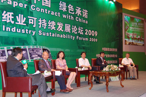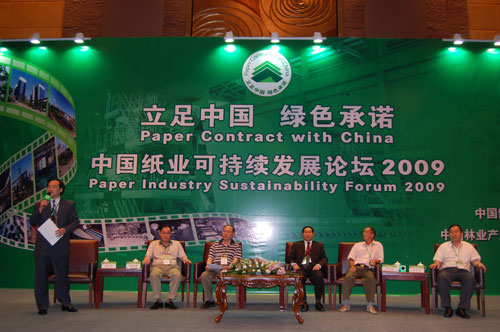 在新中國成立60年之際,中國紙業(yè)也經(jīng)歷了60載春秋的成長與發(fā)展。從建國初期的年產(chǎn)不足百萬噸一躍而成2008年的八千萬噸,從以前依賴進(jìn)口到現(xiàn)在的世界第二大造紙生產(chǎn)國,中國造紙行業(yè)經(jīng)歷了從無到有、點(diǎn)滴積累到奮發(fā)圖強(qiáng)的光榮歷程。然而,在當(dāng)前世界經(jīng)濟(jì)形勢持續(xù)低迷、自然資源緊缺、環(huán)境污染的多重壓力下,中國紙業(yè)如何能突出重圍走出一條有中國特色的可持續(xù)發(fā)展之路,成為了本次論壇交流和討論的焦點(diǎn)。另外,論壇以中國紙業(yè)可持續(xù)發(fā)展為切入點(diǎn),通過全體大會(huì)和對話的形式,分別從宏觀經(jīng)濟(jì)、行業(yè)政策發(fā)展及環(huán)境保護(hù)等角度就造紙業(yè)是否能夠做到環(huán)境友好和人工林是林紙循環(huán)的關(guān)鍵環(huán)節(jié)等話題進(jìn)行開放性討論。
