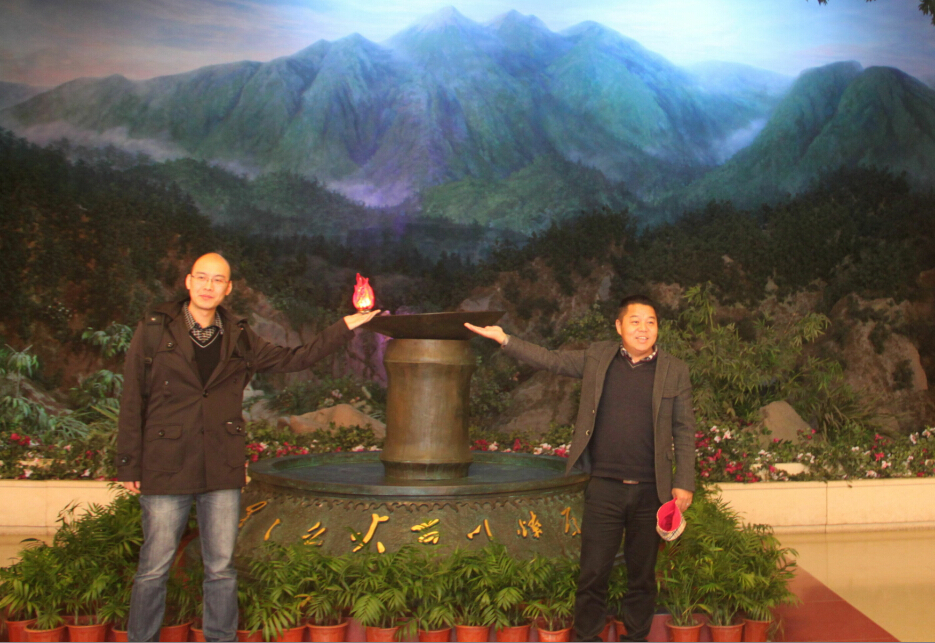 星星之火,可以燎原,大伙紛紛在“星火燎原展廳”作手托火苗狀拍照留念