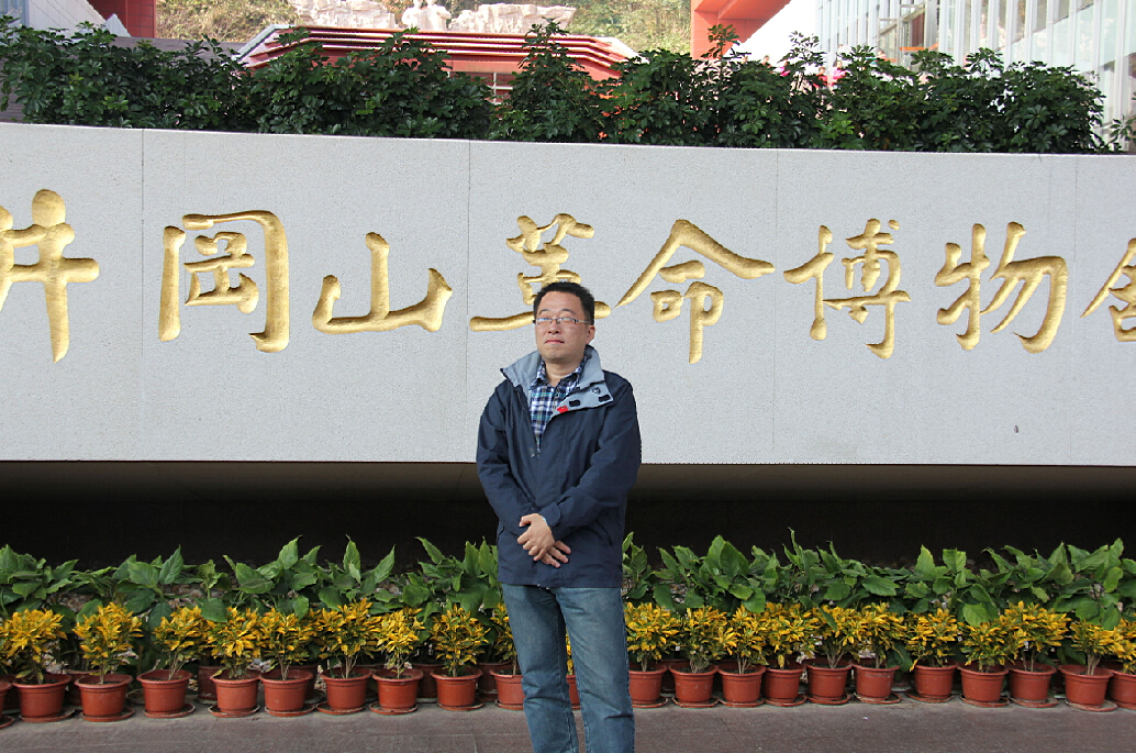 參會嘉賓在朱毛會師雕塑前拍照留念