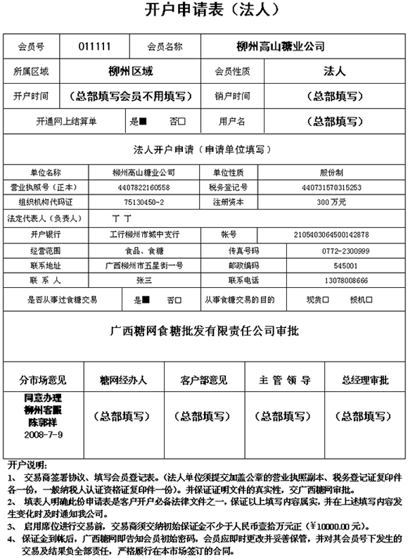 開戶申請表樣本