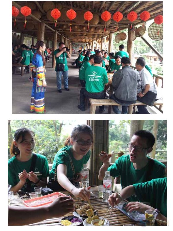 終于進寨了,熱情的壯家人送上了美味小吃,八仙桌前坐,吃得多開心啊