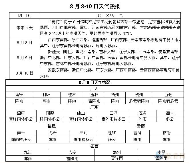 松香產(chǎn)區(qū)8月8-10日天氣預(yù)報(bào)