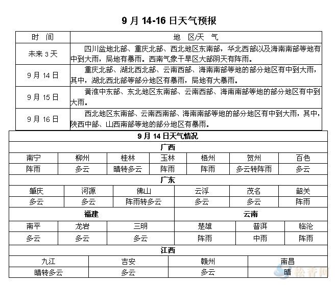 松香產(chǎn)區(qū)9月14-16日天氣預(yù)報(bào)