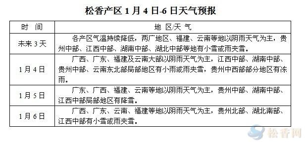 松香產(chǎn)區(qū)1月4日-6日天氣預報