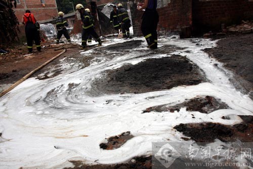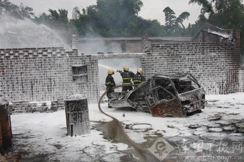 消防官兵用泡沫滅火。南國(guó)早報(bào)記者 唐輝吉攝