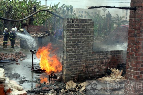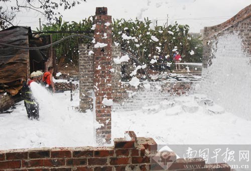 消防官兵正在火場(chǎng)滅火。南國(guó)早報(bào)記者 唐輝吉攝